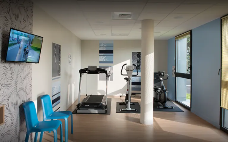 La résidence dispose de plusieurs espaces dédiés aux activités, dont une salle de sport et une bibliothèque.