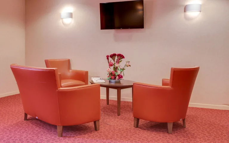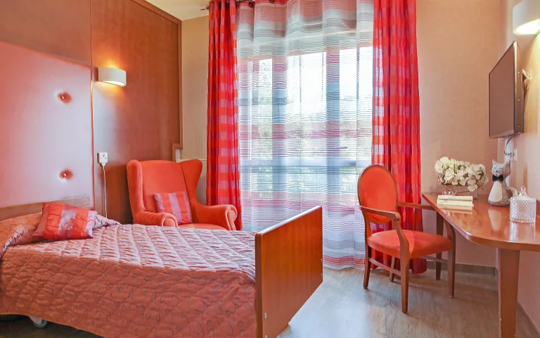 Les chambres de la résidence, toutes équipées de salles de bains privatives, offrent un environnement chaleureux et rassurant.