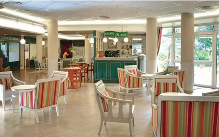 Les résidents ont libre accès aux différents espaces communs, dont une bibliothèque, un salon de coiffure, une boutique, et une salle kiné dédiée.