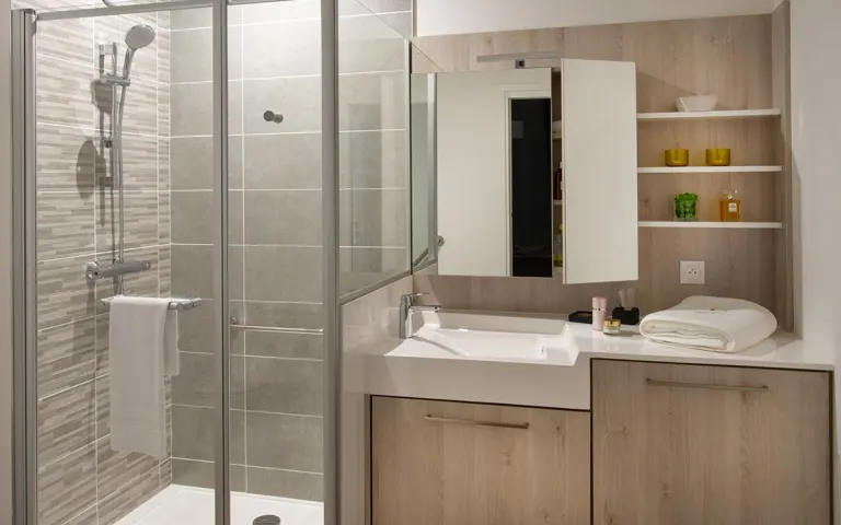 Elle est également équipée d'une douche à l'italienne, pour faciliter l'usage aux personnes à mobilité réduite.
