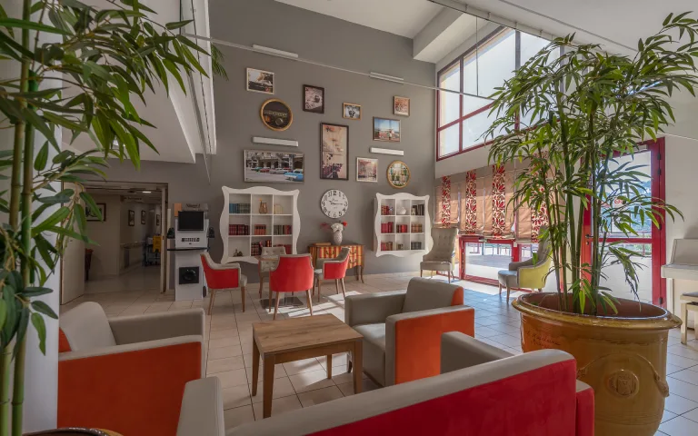 La résidence dispose d'une salle dédiée à la kinésithérapie et d'un salon de coiffure.