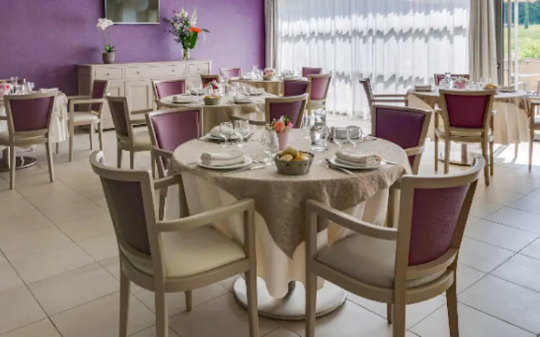 Les repas sont élaborés par un chef cuisinier avec des produits frais, proposant différents régimes alimentaires comme végétarien, sans sel ou spécial diabète.